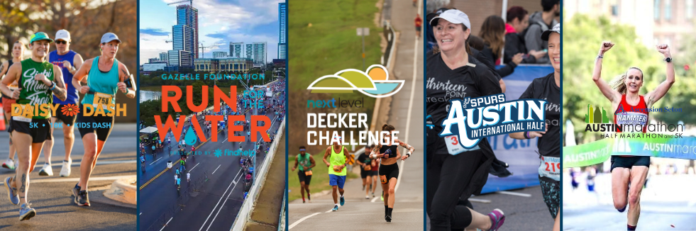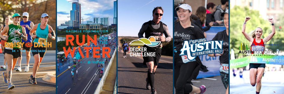 Half Track – Complete the longest distance for the first 4 races and finish with the Austin Half Marathon. Daisy Dash 10K Run, Run for the Water 10 Mile Run, Decker Challenge Half Marathon, Spurs Austin International Half Marathon, and finish with the Austin Half Marathon.