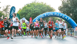 A 10-mile relay race with teams comprised of 4 runners. Each participant runs a 2.5 mile loop from one central transition area.